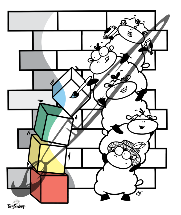 “BigSheep druščina je skupina navihanih, a prikupnih ovčk, ki se vedno podajo na kakšno novo dogodivščino. Zelo rade raziskujejo in se učijo novih stvari. Preprosto jim ne zmanjka idej, saj so radovedne, razposajene, včasih pa celo malce nagajive."